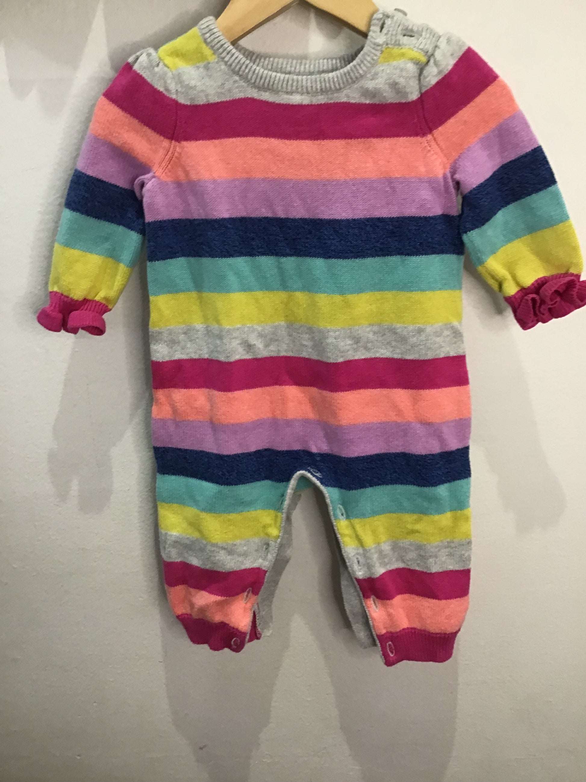 Colourful frilly sleeve sweater romper 3-6m