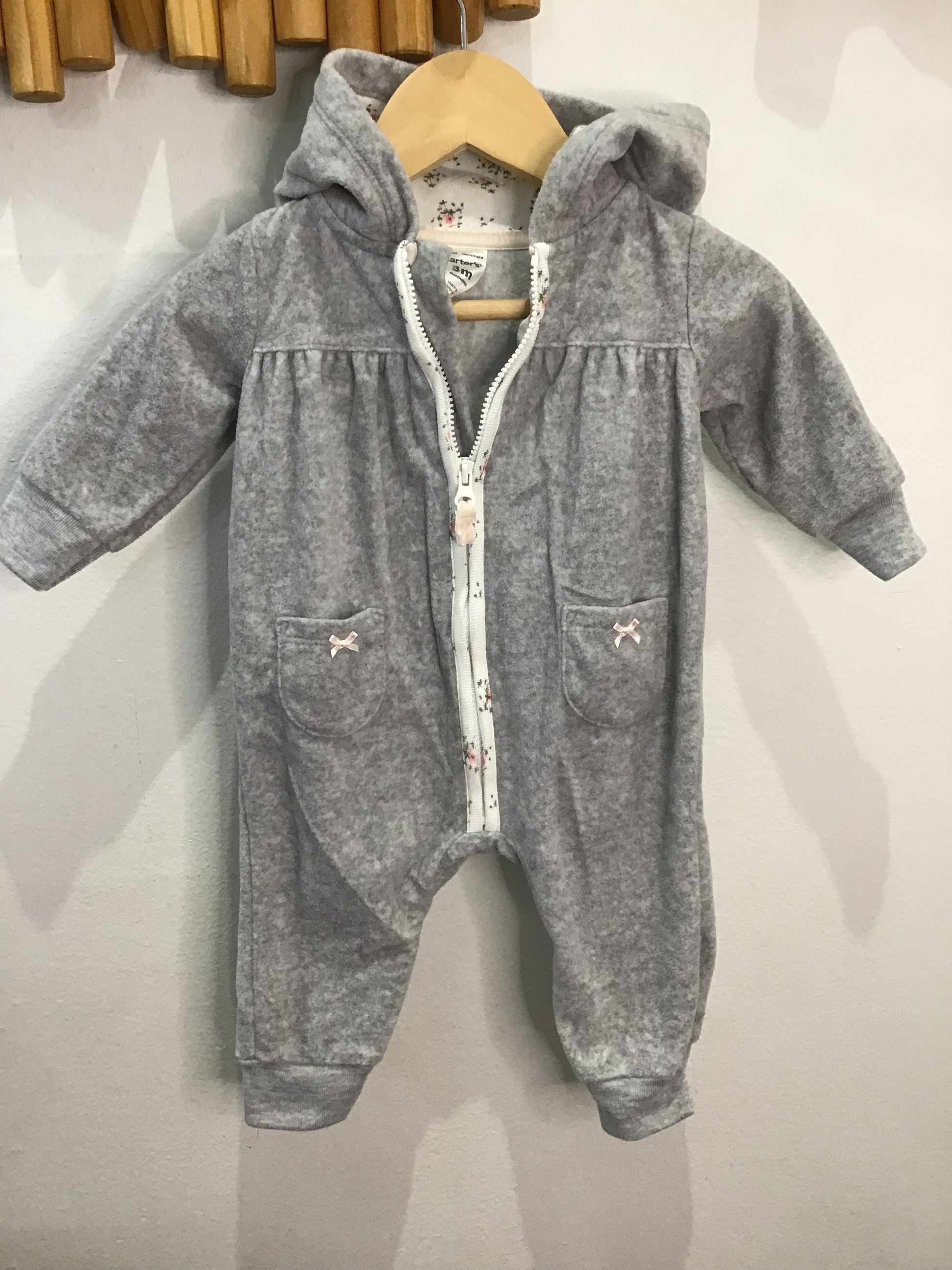 Grey floral detail fleece romper 3m