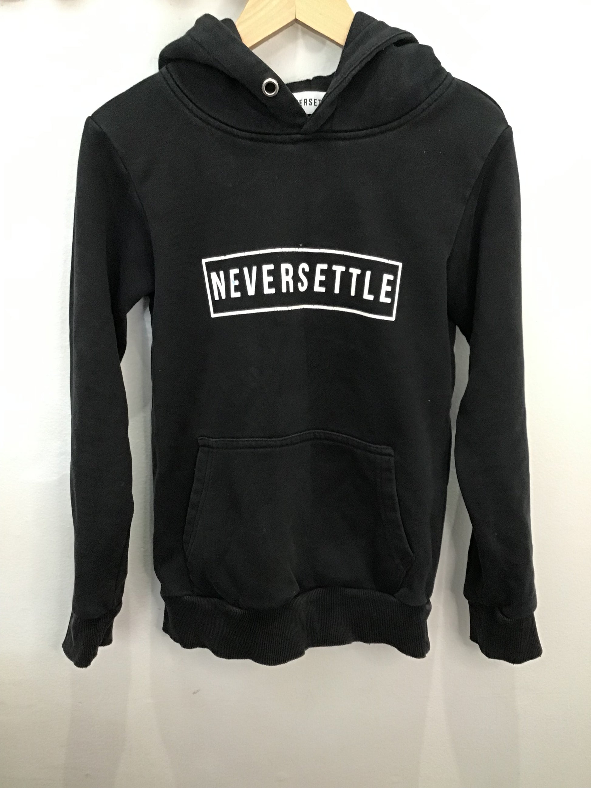 Never settle black pullover 6-8y