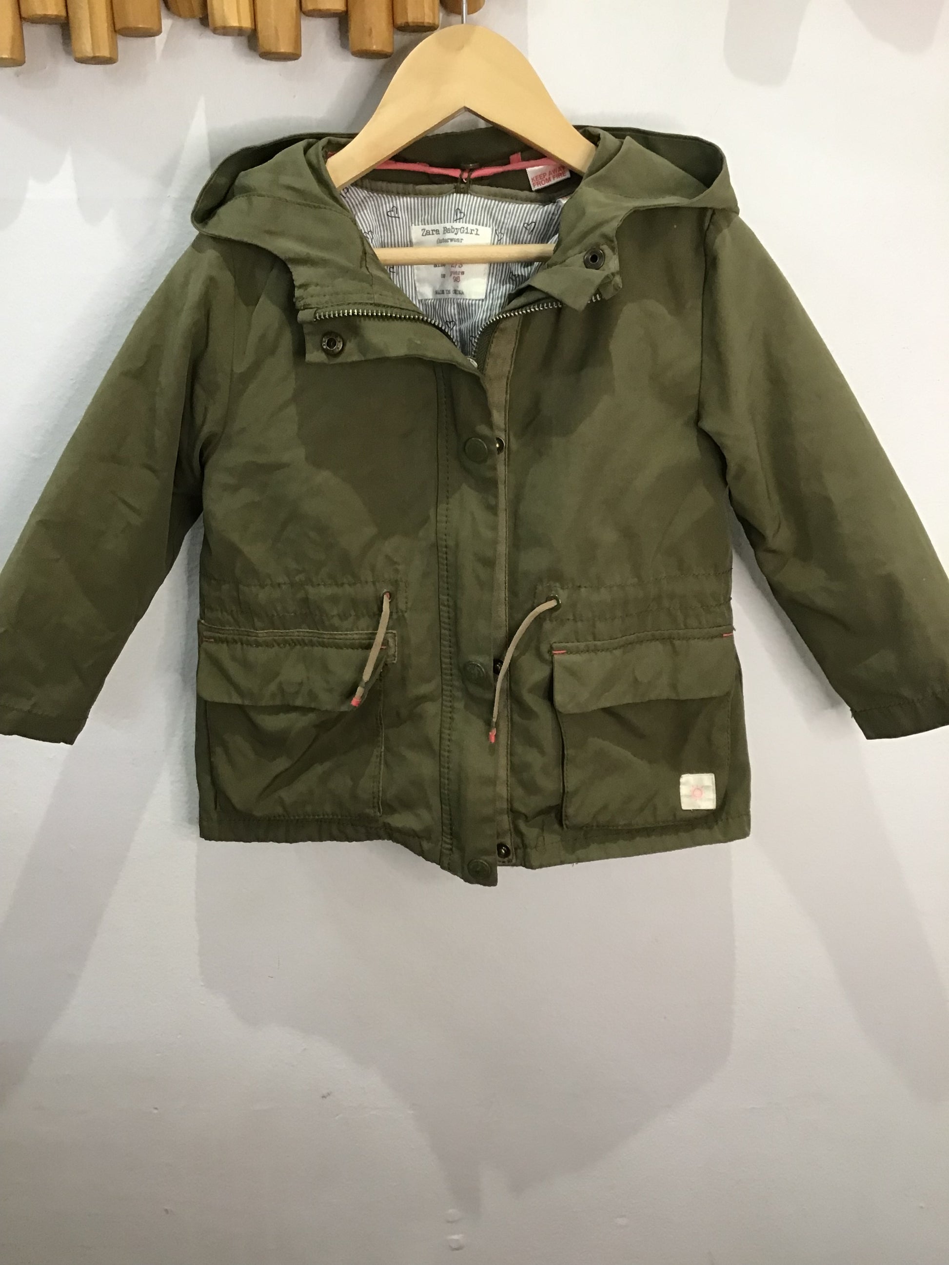 Olive jacket w removable inside layer 2-3y