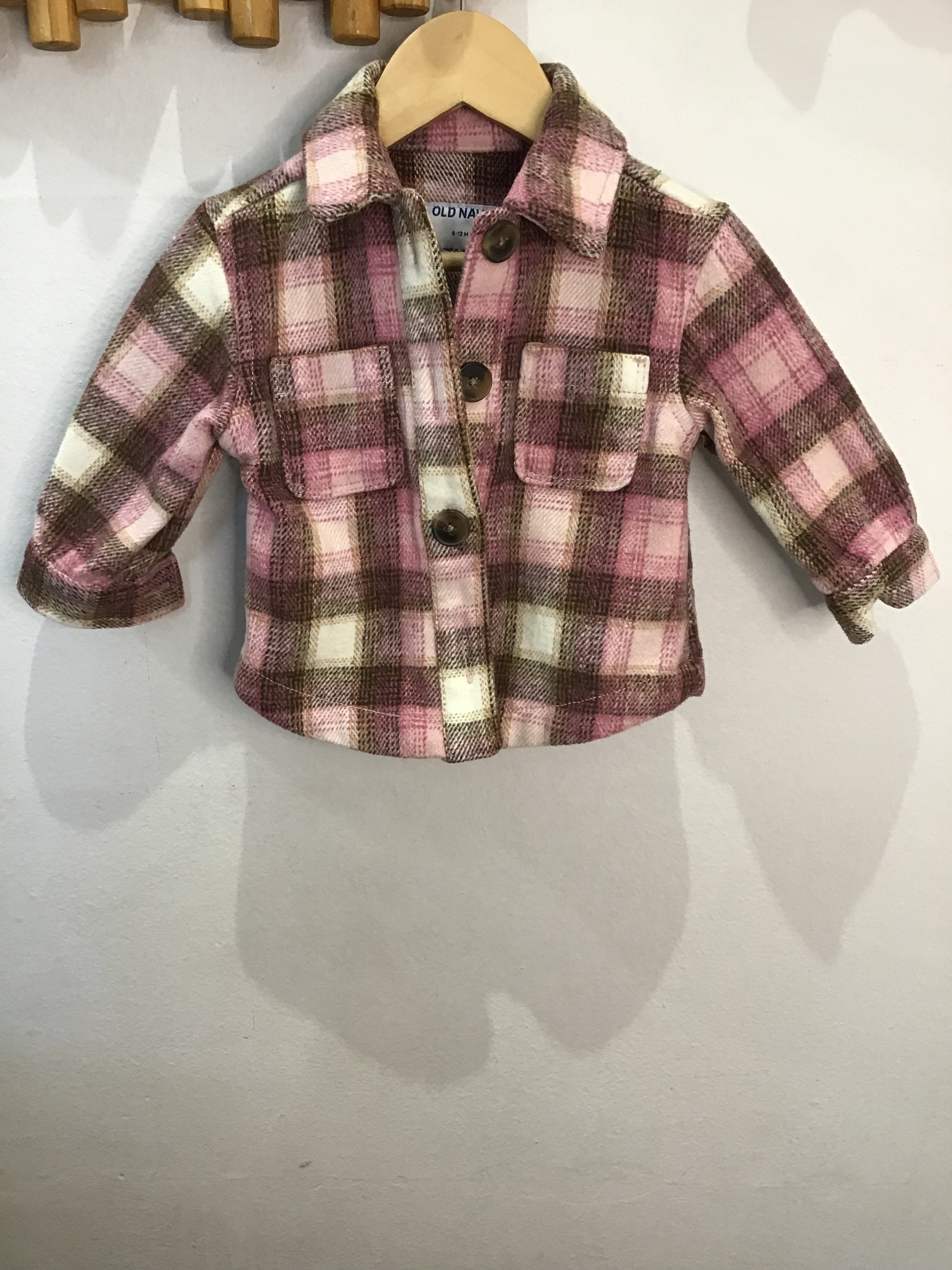 Pink checkered overshirt 6-12m