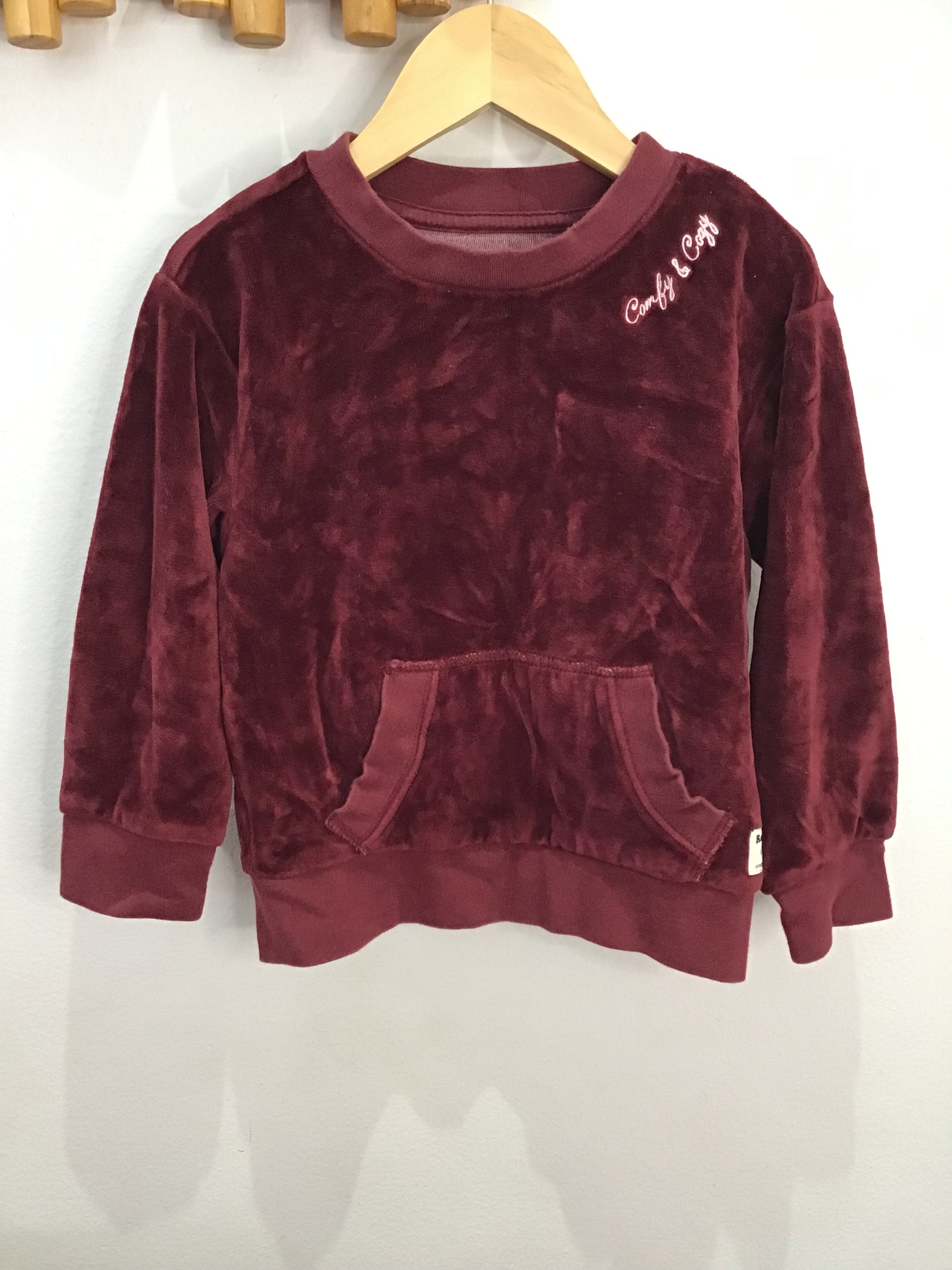 Roots maroon velvet pullover 3y